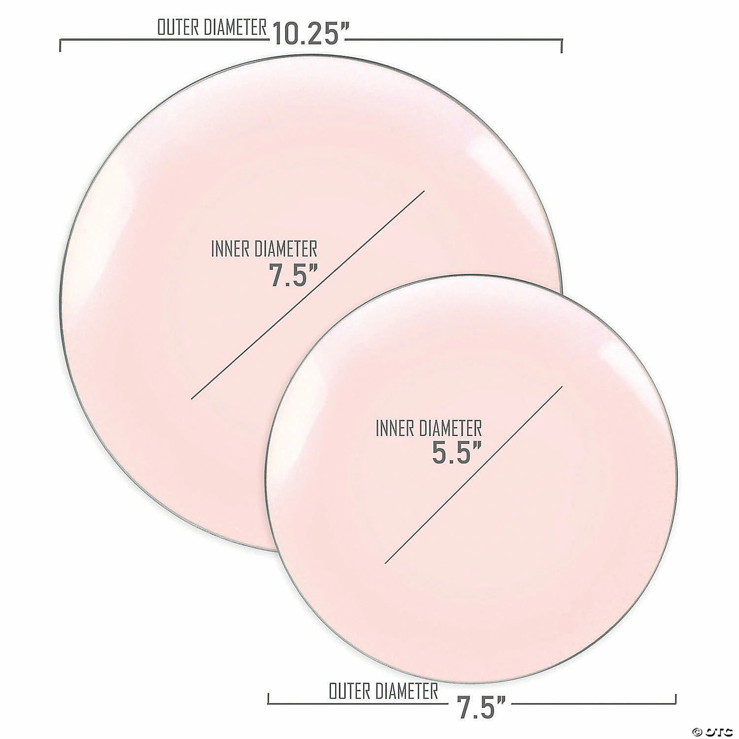 • Approx. inner diameter: 7 ½”• Approx. outer diameter: 10 ¼”• Approx. outer rim diameter: 1 ¼”• Quantity: 4 packs of 10 plates• Color: Pink with Silver Rim• Shape: Round• Material: Plastic• Disposable: One-time, single party use• Recycling code: #6 PS Polystyrene• BPA-free: Yes Special Shipping Information: This item ships separately from other items in your order. This item cannot ship to a P.O. Box. This item may be subject to additional processing days. Item is not eligible for expedited shipping. You may initiate a return for unused items within 30 days, if the items are in original packaging with all original materials included with the shipment.