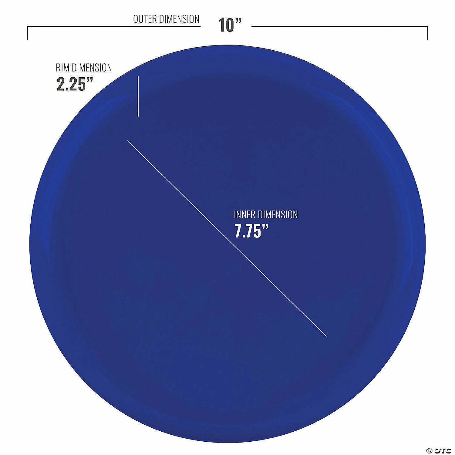 • Approx. inner diameter: 7 ¾”• Approx. outer diameter: 10″• Approx. outer rim diameter: 2 ¼”• Quantity: 12 packs of 10 plates• Color: Light Blue• Shape: Round• Material: Plastic• Disposable: One-time, single party use• Recycling code: #6 PS Polystyrene• BPA-free: Yes Special Shipping Information: This item ships separately from other items in your order. This item cannot ship to a P.O. Box. This item may be subject to additional processing days. Item is not eligible for expedited shipping. You may initiate a return for unused items within 30 days, if the items are in original packaging with all original materials included with the shipment.