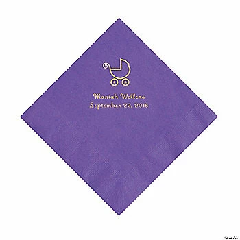 Cheap ๐งจ Amethyst Baby Carriage Personalized Napkins with Gold Foil – Luncheon ๐