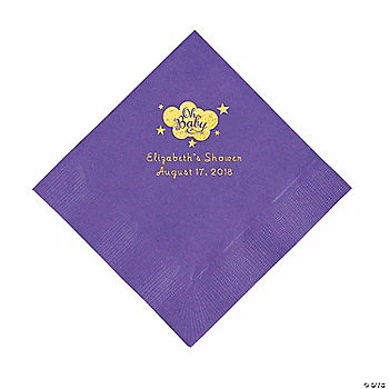 New 😍 Amethyst Oh Baby Personalized Napkins with Gold Foil – 50 Pc. Luncheon 👏