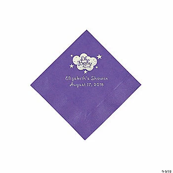 Best Pirce ✨ Amethyst Oh Baby Personalized Napkins with Silver Foil – 50 Pc. Beverage 🌟