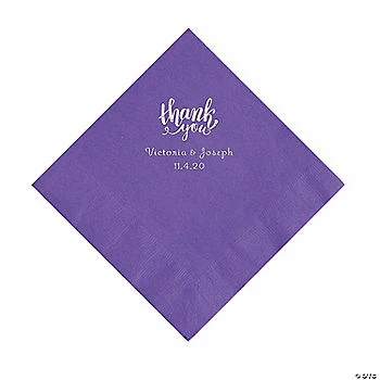Wholesale 👏 Amethyst Thank You Personalized Napkins with Silver Foil – Luncheon ⌛