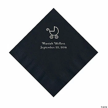 Best Pirce ✔️ Black Baby Carriage Personalized Napkins with Silver Foil – Luncheon ✔️