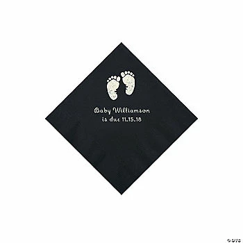 Promo 😉 Black Baby Feet Personalized Napkins with Silver Foil – 50 Pc. Beverage 👏