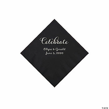 Deals 🎁 Black Celebrate Personalized Napkins with Silver Foil – Beverage 😉