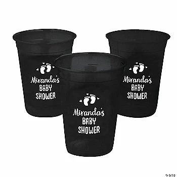 Flash Sale π Black Personalized Baby Shower Footprints Plastic Cups – 40 Pc. β€οΈ