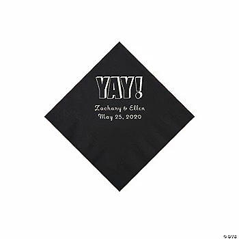 Best Pirce 🤩 Black Yay Personalized Napkins with Silver Foil – Beverage 😉