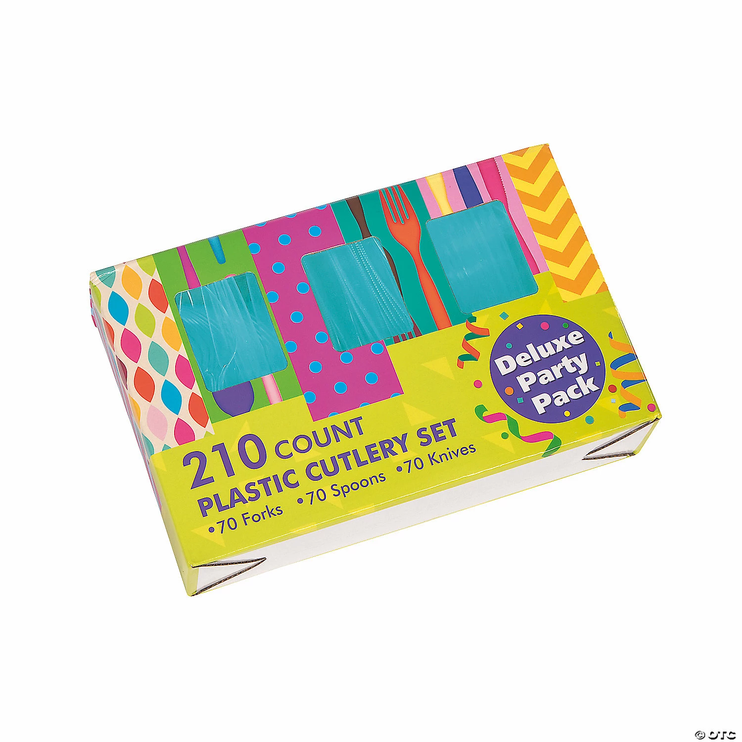 Who wants to do dirty dishes when there’s fun to be had? Stock up on durable plastic utensils with these High Count Cutlery Sets and leave the cleanup time behind! These sets include plenty of plastic forks, plastic knives and plastic spoons for your whole group, and you can easily match it to your party supplies, party theme or dΓ©cor. Includes 70 of each: forks, knives and spoons. Plastic. (210 pcs. per unit) Approx. 6″ each.β’Β Serves 70 guests.