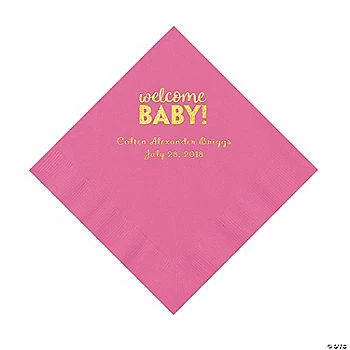 Best Pirce ๐งจ Candy Pink Welcome Baby Personalized Napkins with Gold Foil – 50 Pc. Luncheon ๐ฅฐ