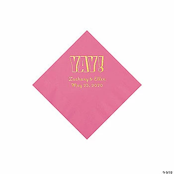 Cheapest ❤️ Candy Pink Yay Personalized Napkins with Gold Foil – Beverage 😉
