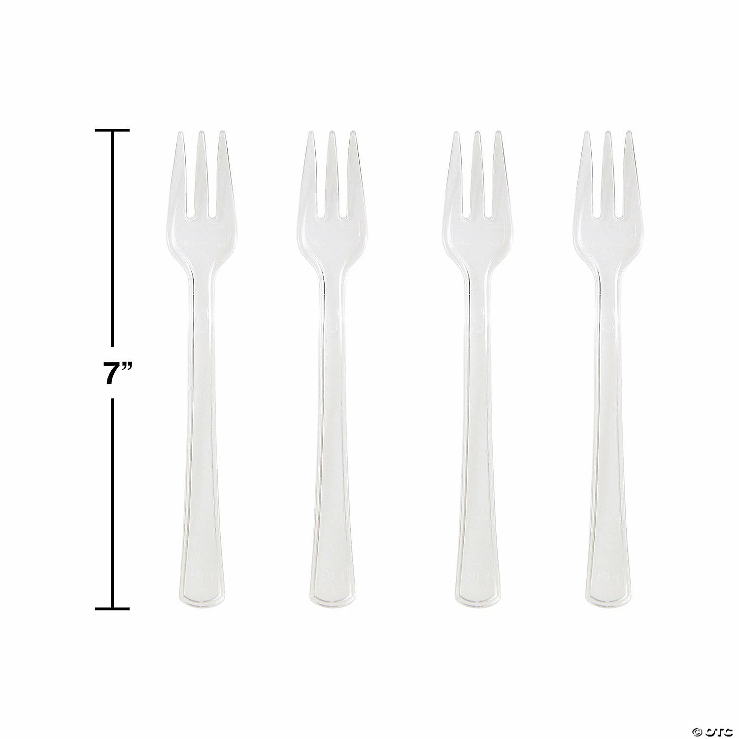 Accessorize your petite sized party foods with trendy Clear Mini Forks. The sturdy plastic forks measure approximately 4 inches long and are perfect for bite sized appetizers and desserts. Sold in quantities of 96 per package, the clear utensils provide the perfect complement to tableware in any color or design. Special Shipping Information: This item ships separately from other items in your order. This item cannot ship to a P.O. Box. This item may be subject to additional processing days. ITEM IS NOT ELIGIBLE FOR EXPEDITED SHIPPING