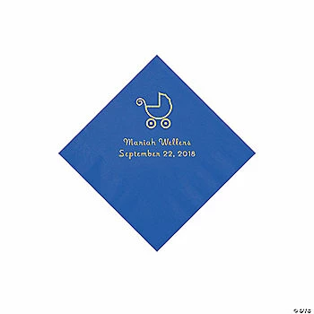 Brand new 👏 Cobalt Blue Baby Carriage Personalized Napkins with Gold Foil – Beverage ❤️