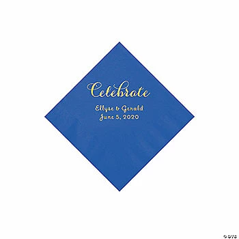 Flash Sale ✔️ Cobalt Blue Celebrate Personalized Napkins with Gold Foil – Beverage 🛒