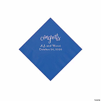 Wholesale 🎁 Cobalt Blue Congrats Personalized Napkins with Silver Foil – Beverage 🔔