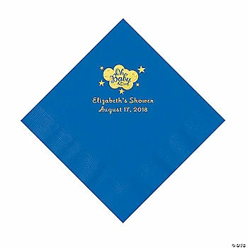 Promo ๐ Cobalt Blue Oh Baby Personalized Napkins with Gold Foil – 50 Pc. Luncheon ๐