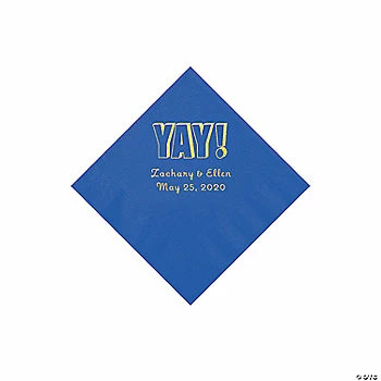 New ๐ Cobalt Blue Yay Personalized Napkins with Gold Foil – Beverage ๐ฅฐ