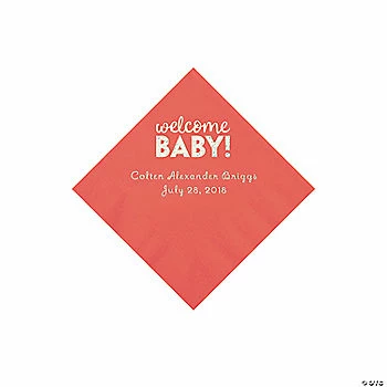 Top 10 😀 Coral Welcome Baby Personalized Napkins with Silver Foil – 50 Pc. Beverage 🤩