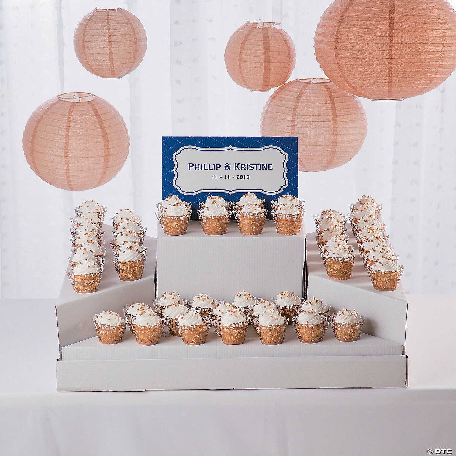 Planning on cupcakes at your wedding reception? Use this stand-up for a unique way to display your sweets! Perfect for your dessert table, This stand-up will show off your treats. Holds approx. 46 cupcakes. Cardboard. 32″ x 32″ x 17″ Assembly required. © OTC