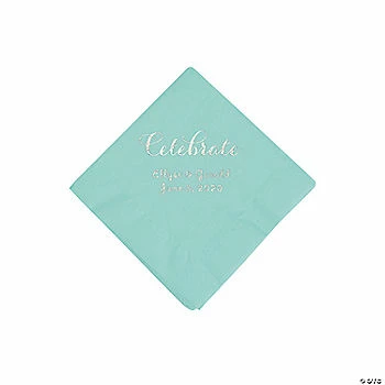 Deals 👏 Fresh Mint Celebrate Personalized Napkins with Silver Foil – Beverage 🤩
