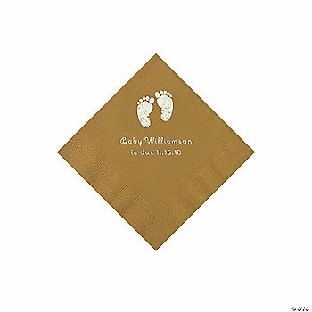 Discount ✔️ Gold Baby Feet Personalized Napkins with Silver Foil – 50 Pc. Beverage 🎉