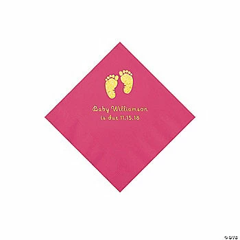 Buy ⭐ Hot Pink Baby Feet Personalized Napkins with Gold Foil – 50 Pc. Beverage 👍