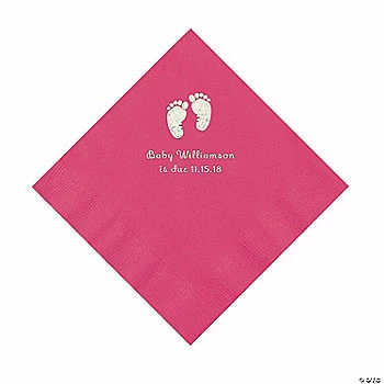 Top 10 ❤️ Hot Pink Baby Feet Personalized Napkins with Silver Foil – 50 Pc. Luncheon 🥰