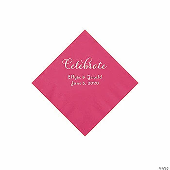 New 👏 Hot Pink Celebrate Personalized Napkins with Silver Foil – Beverage 🔔