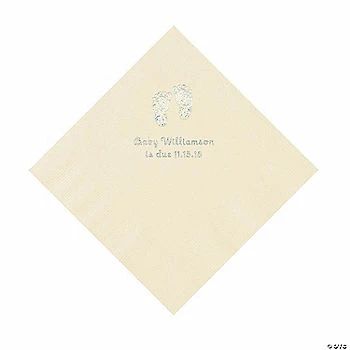 Wholesale 😀 Ivory Baby Feet Personalized Napkins with Silver Foil – 50 Pc. Luncheon 😍