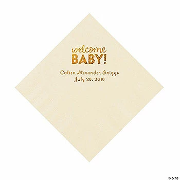Hot Sale 😀 Ivory Welcome Baby Personalized Napkins with Gold Foil – 50 Pc. Luncheon ✔️