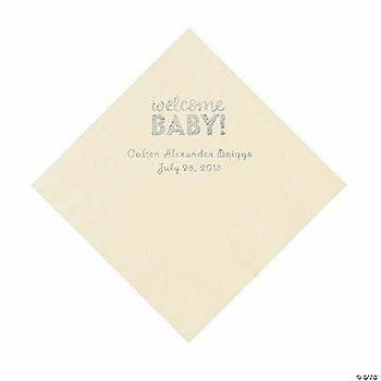 Top 10 ๐ Ivory Welcome Baby Personalized Napkins with Silver Foil โ 50 Pc. Luncheon ๐