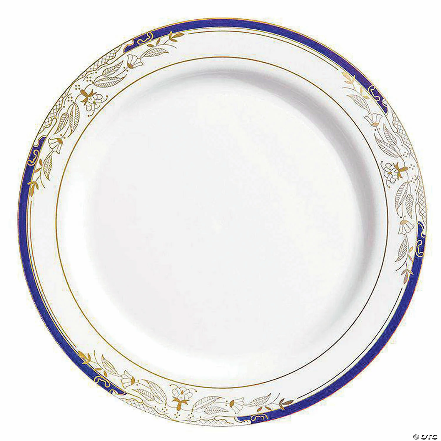 Best Sale π Kaya Collection 10.25″ White with Blue and Gold Harmony Rim Plastic Dinner Plates (120 Plates) π€©