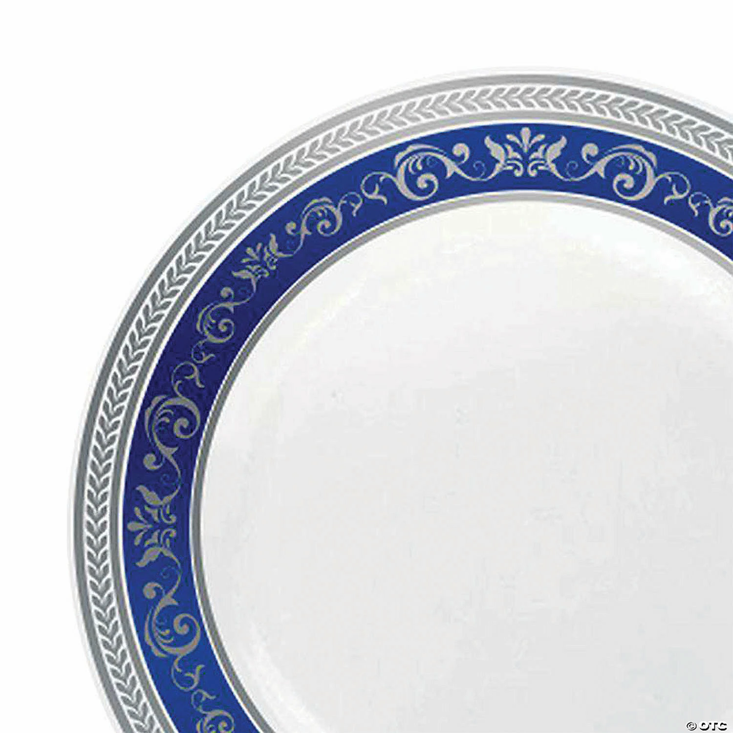 Coupon ❤️ Kaya Collection 10.25″ White with Blue and Silver Royal Rim Plastic Dinner Plates (120 Plates) ❤️