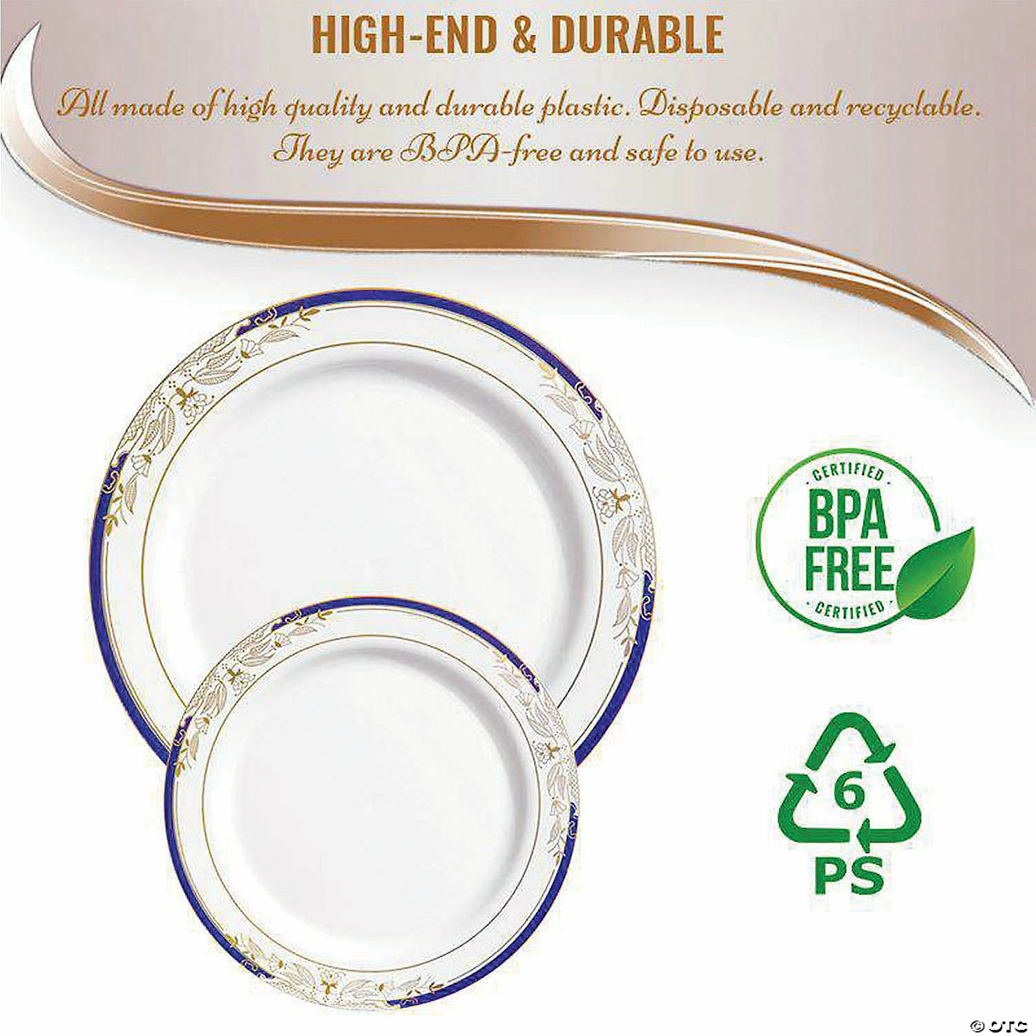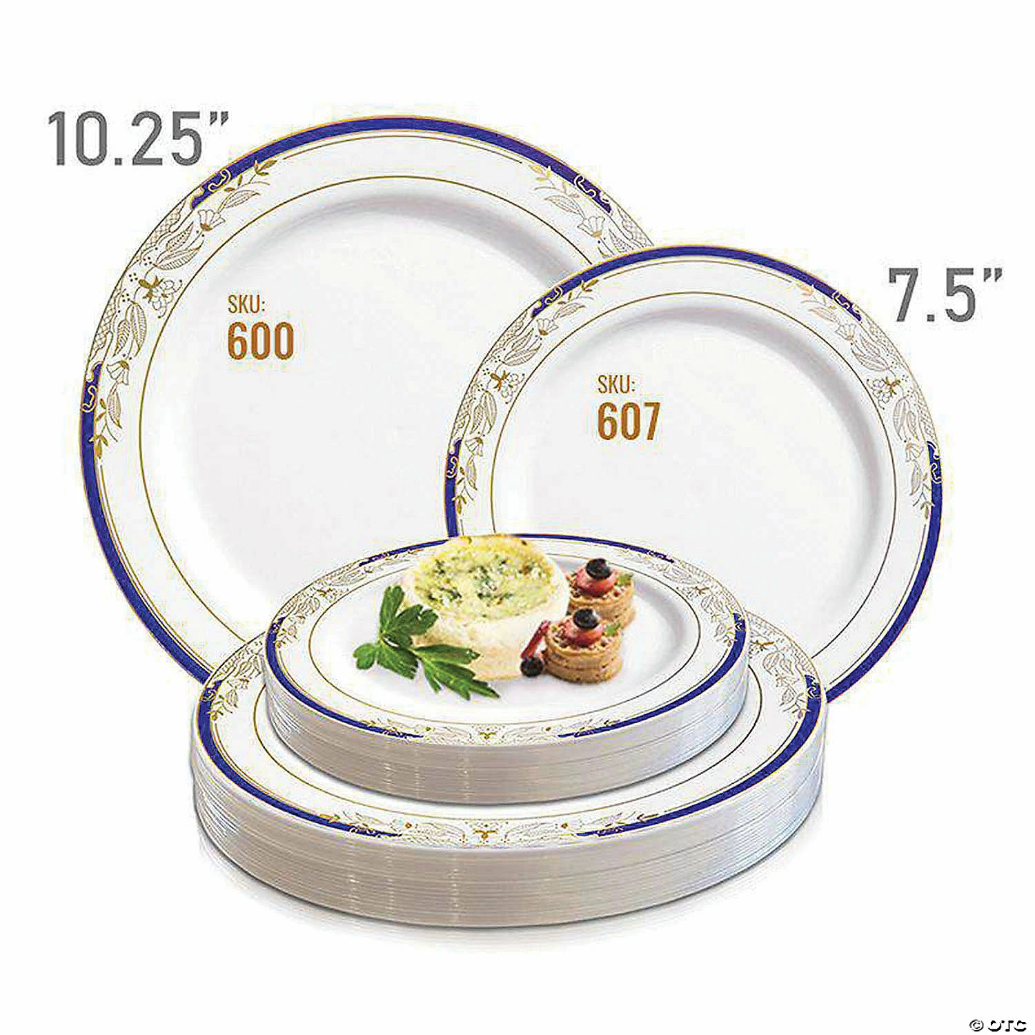 Best Pirce π€© Kaya Collection 7.5″ White with Blue and Gold Harmony Rim Plastic Appetizer/Salad Plates (120 Plates) β