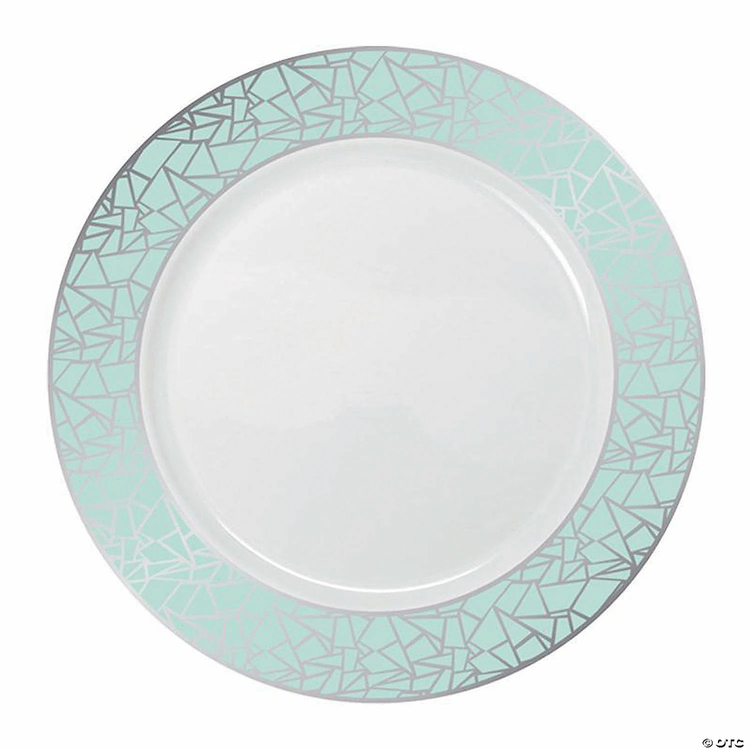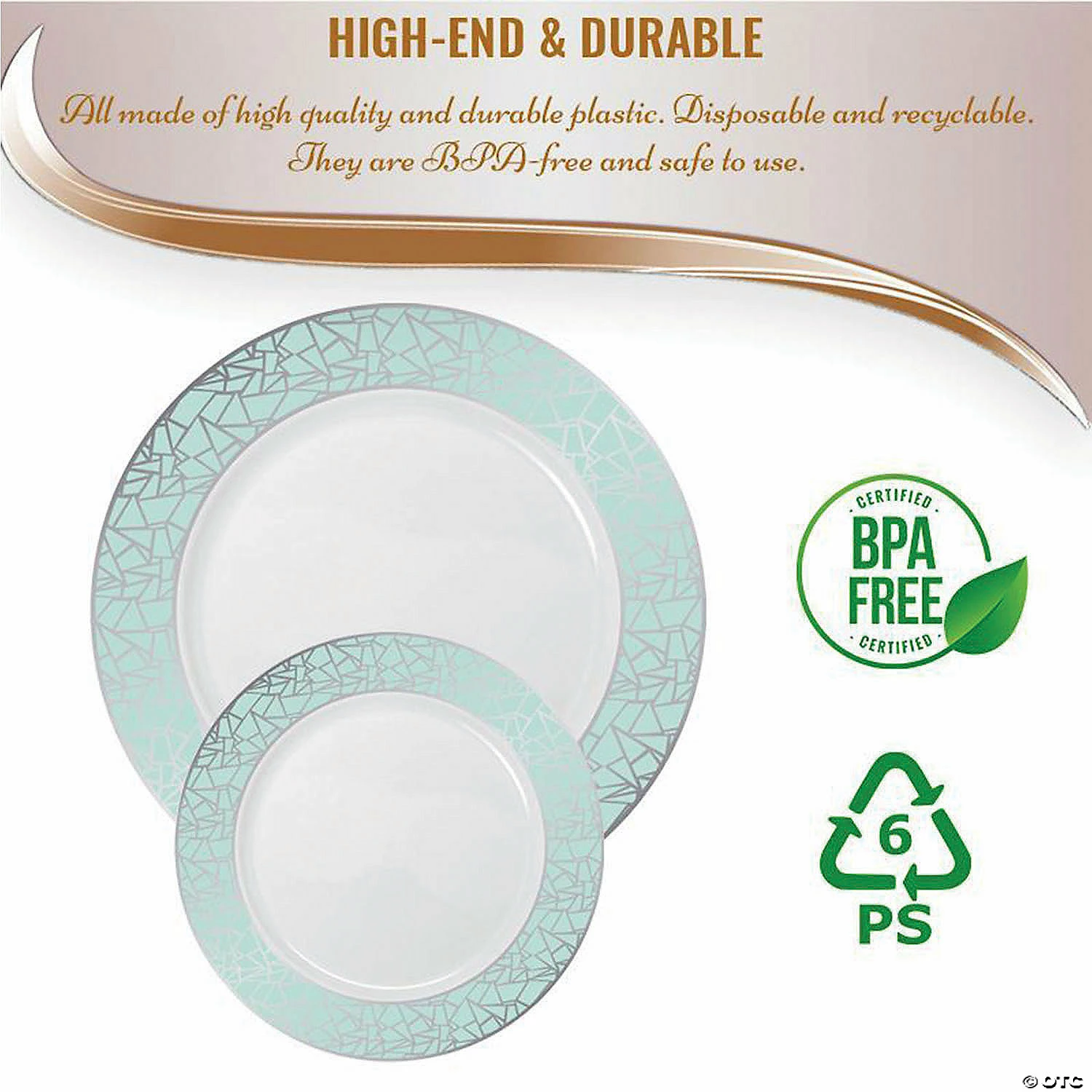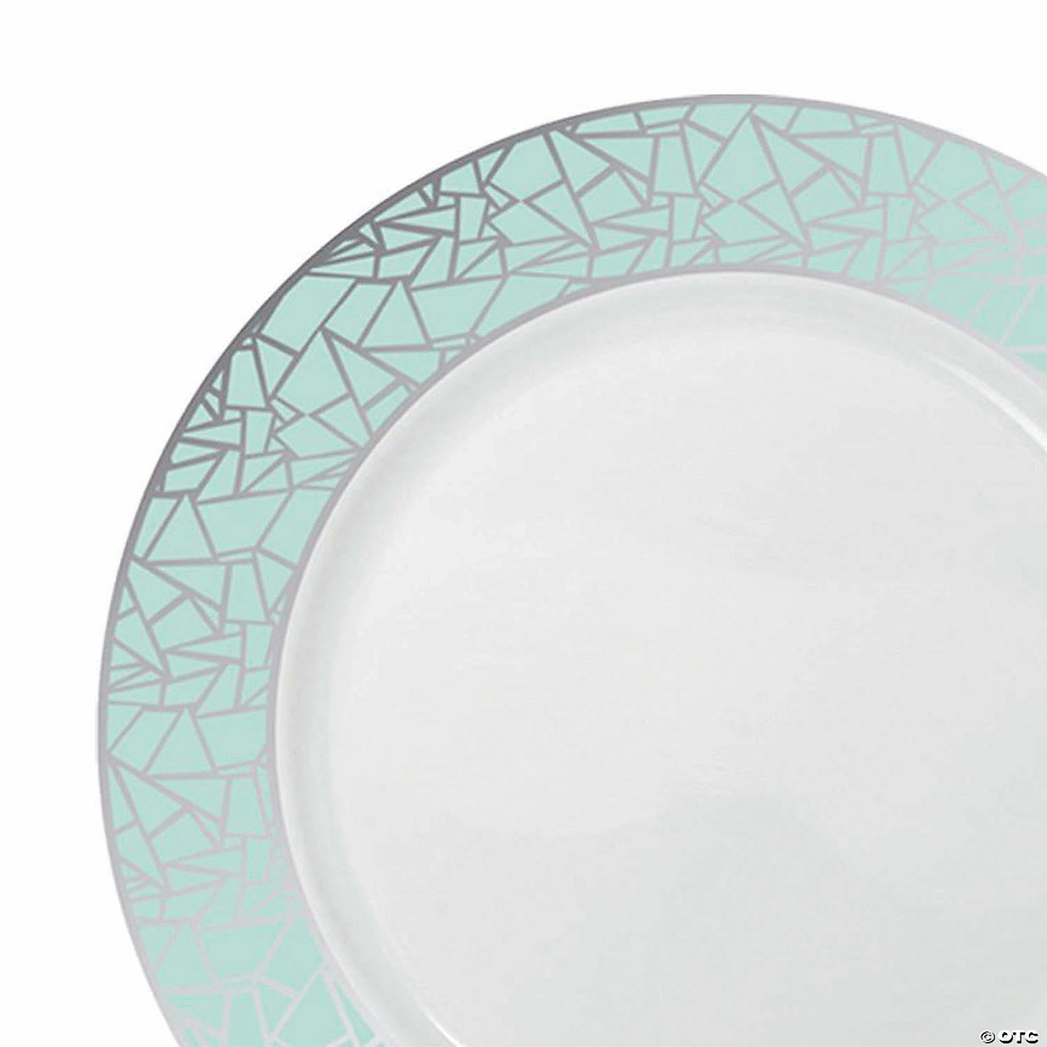 Promo 🎉 Kaya Collection 7.5″ White with Turquoise Blue and Silver Mosaic Rim Round Plastic Appetizer/Salad Plates (120 Plates) 👍