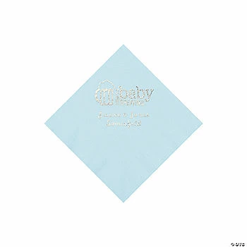 Cheapest 😉 Light Blue Baby Brewing Personalized Napkins with Silver Foil – 50 Pc. Beverage 🎉