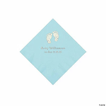 New 💯 Light Blue Baby Feet Personalized Napkins with Silver Foil – 50 Pc. Beverage 🛒