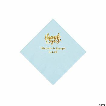 Coupon ๐ Light Blue Thank You Personalized Napkins with Gold Foil – Beverage ๐งจ