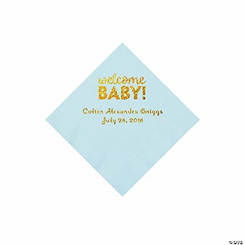 Buy 🎁 Light Blue Welcome Baby Personalized Napkins with Gold Foil – 50 Pc. Beverage 🌟