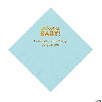 Cheap 🌟 Light Blue Welcome Baby Personalized Napkins with Gold Foil – 50 Pc. Luncheon 🌟