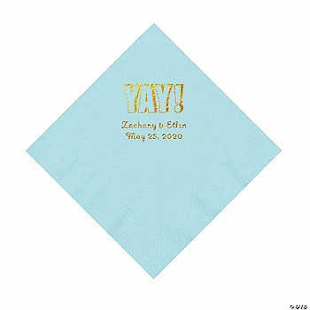 Wholesale 🔔 Light Blue Yay Personalized Napkins with Gold Foil – Luncheon 🤩
