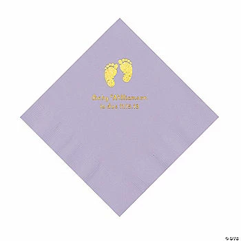 Flash Sale 😉 Lilac Baby Feet Personalized Napkins with Gold Foil – 50 Pc. Luncheon 🌟