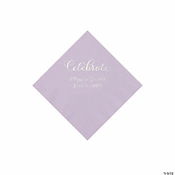 Wholesale ❤️ Lilac Celebrate Personalized Napkins with Silver Foil – Beverage 💯