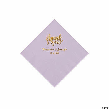 Discount ✔️ Lilac Thank You Personalized Napkins with Gold Foil – Beverage 🔥