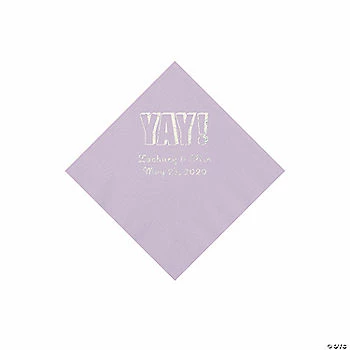 Wholesale ✔️ Lilac Yay Personalized Napkins with Silver Foil – Beverage 🤩