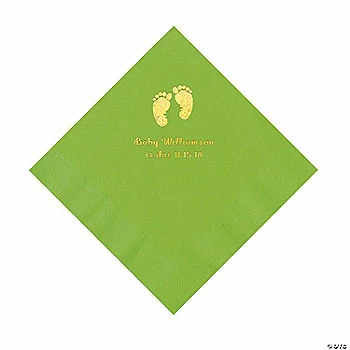Promo ๐ Lime Green Baby Feet Personalized Napkins with Gold Foil – 50 Pc. Luncheon โจ