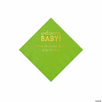 Budget ⭐ Lime Welcome Baby Personalized Napkins with Gold Foil – 50 Pc. Beverage ✔️