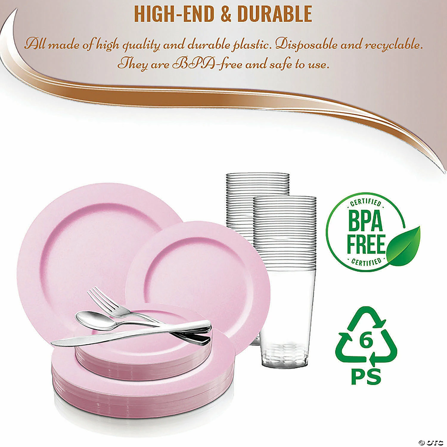Flash Sale ⭐ Matte Pink Round Disposable Plastic Dinnerware Value Set (20 Settings) ⌛