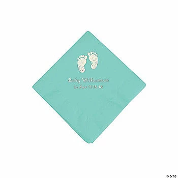 Outlet ✨ Mint Green Baby Feet Personalized Napkins with Silver Foil – 50 Pc. Beverage 🛒