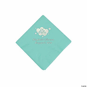 Deals 🛒 Mint Green Oh Baby Personalized Napkins with Silver Foil – 50 Pc. Beverage ⭐