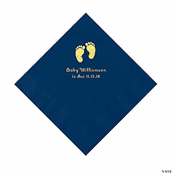 Best Pirce 🌟 Navy Baby Feet Personalized Napkins with Gold Foil – 50 Pc. Luncheon 💯